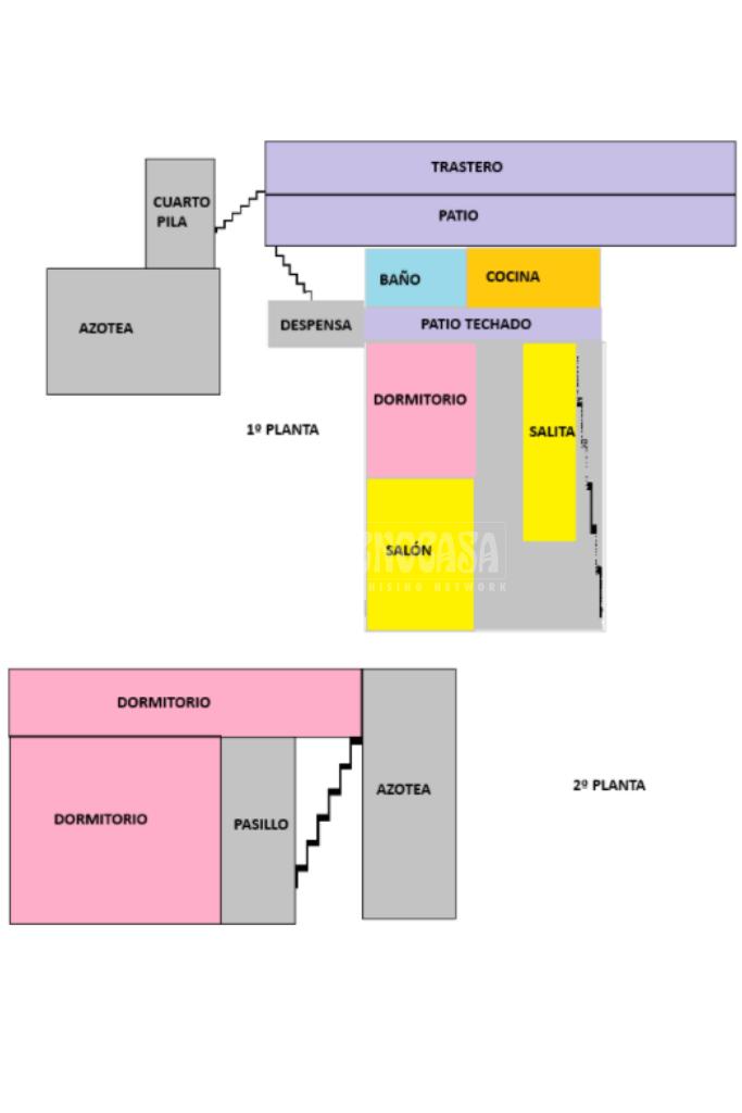 En planta baja, dispone de salón, cocina, un segundo salón y una salita, además de un dormitorio. Completa esta planta un patio techado, patio exterior, trastero y cuarto de pila, aportando funcionalidad y espacios auxiliares.