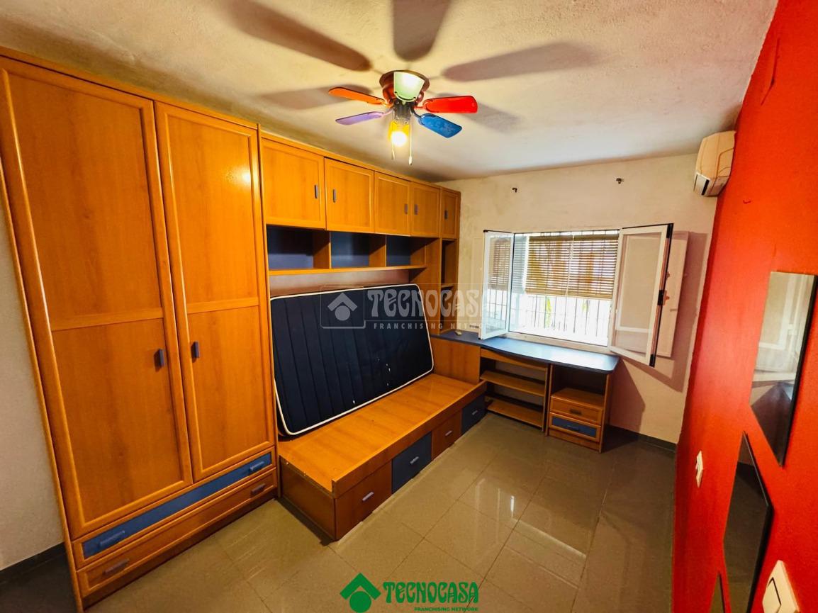 La primera planta alberga tres dormitorios, un baño completo con bañera y un práctico armario empotrado en el pasillo, que facilita la organización y optimiza el espacio.