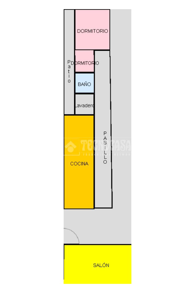 Dispone además de un cuarto lavadero con salida directa a un patio compartido, al cual también se accede desde uno de los dormitorios. La vivienda cuenta con un baño completo y dos habitaciones: una habitación individual con acceso al patio compartido y un dormitorio principal que disfruta de un patio privado, proporcionando un espacio exterior exclusivo y muy útil.